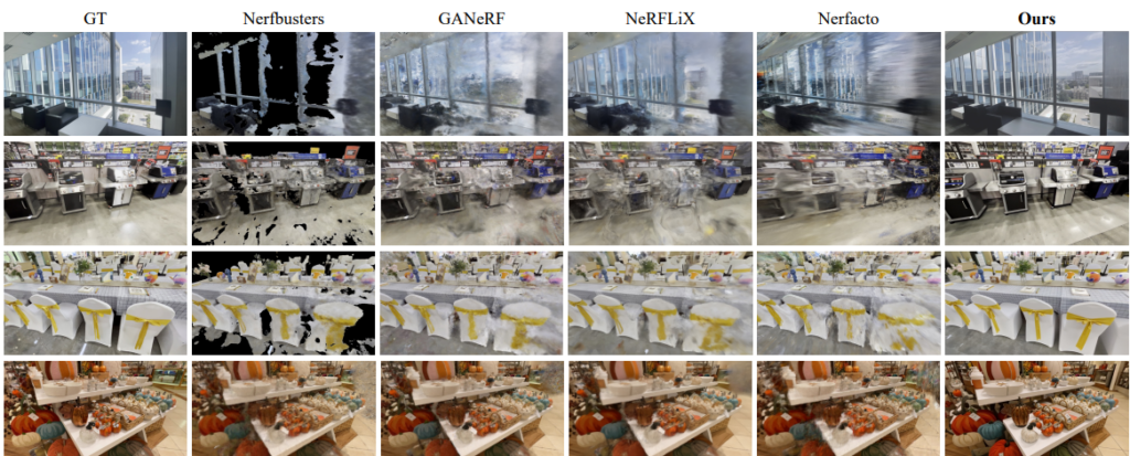 - クロスリファレンス: 複数カメラで撮影されたデータセットの場合、1つのカメラのデータだけで3Dモデルを学習し、他のカメラからの視点を「新規視点」として汚い画像を生成します。