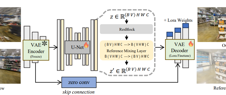 DIFIX 3D+の中心にあるのは、「DIFIX」と呼ばれるシングルステップの画像ディフュージョンモデルです。ディフュージョンモデルは、インターネット上の膨大な画像データから学習することで、現実世界の画像のパターンを深く理解しています。